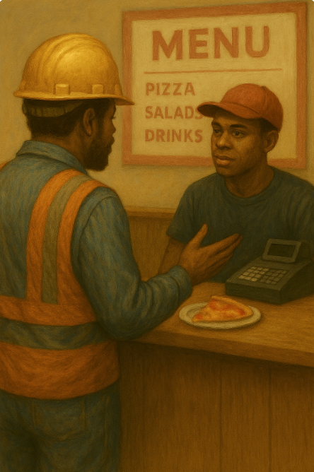 One day on his lunch break. Rich walked into the pizza shop and asked for two slices of pizza. One of them looked at Rich with a certain look. Rich didn’t understand why the guy looked at him like that. Since he loves pizza, that wasn’t going to stop him from eating there. So, he got the two slices and left. This continued for weeks. One day Rich ordered two slices of pizza, and one of the guys took a long time to bring out his pizza. He was almost running behind. Once he got the pizza. He was really upset that it took so long. Now he wasn’t going to have time to eat it.